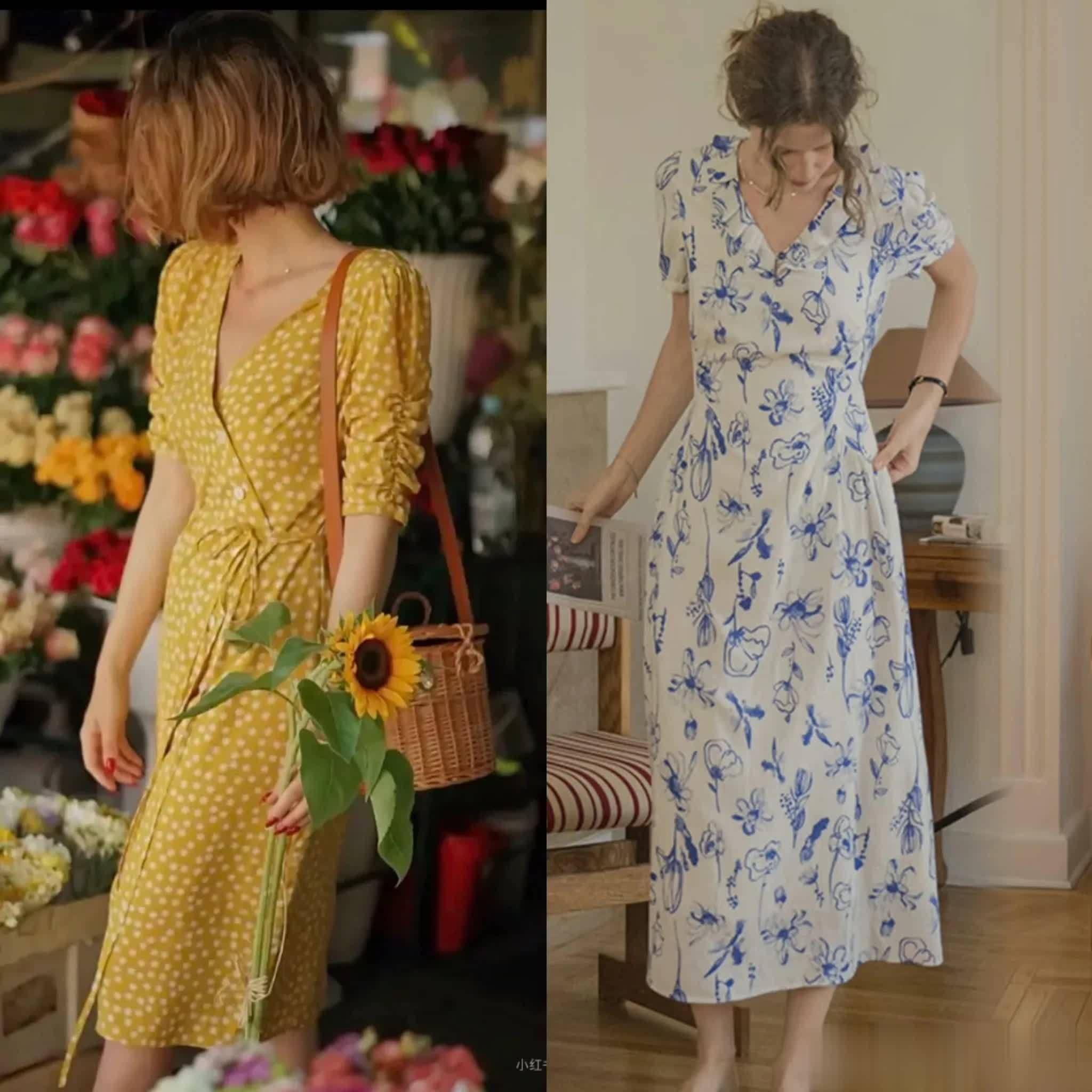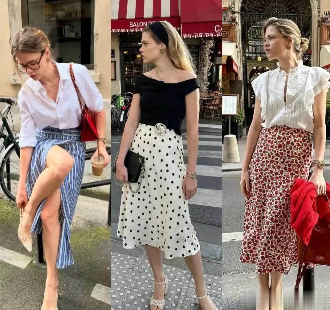 法式的印花长裙是特别经典的,自带浪漫的氛围,无论是波点、碎花、条纹等元素,都非常好看。