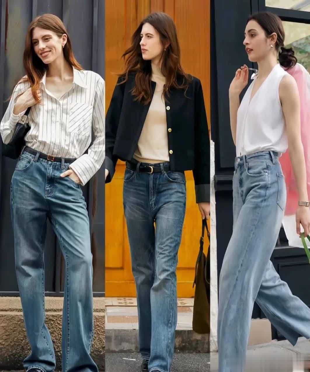 如果要挑一条很法式的裤子,那一定是牛仔裤了,几乎全年无休,夏天可以选择一条宽松的牛仔阔腿裤,穿起来又帅气又百搭。